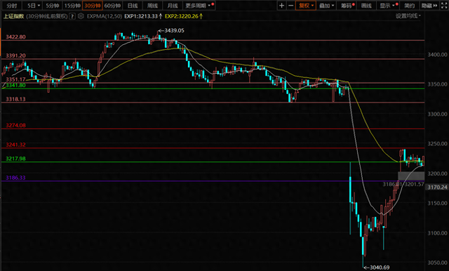 那么下午,我们就以上图的30分钟E短线3212点为准,如果支撑不破,就继续认为是在继续反弹途中。如果跌破,就认为下来寻找支撑3200点、或下缺口3186点来补缺。